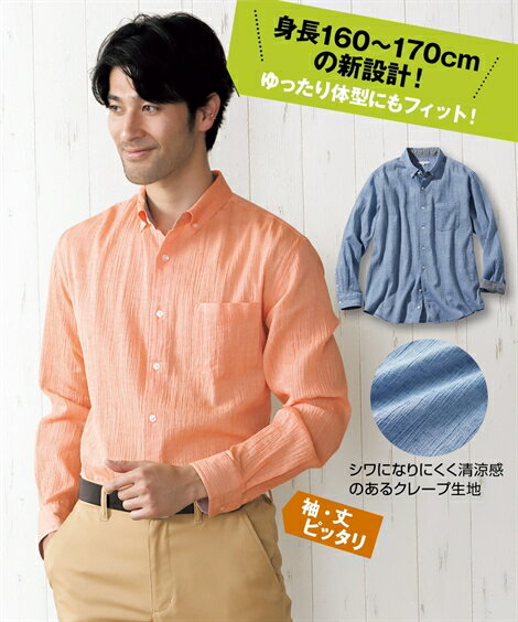 麻混クレープ無地長袖シャツ 着丈 袖丈短めサイズ 消臭テープ付 メンズ Lcb 5lcb シワになりにくい麻混のクレープ生地使用 大きいサイズ ニッセン 送料無料 ポイント倍付け中 のおすすめ キテミヨ Kitemiyo